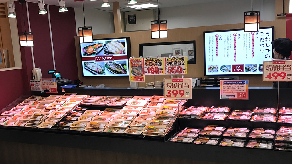 うおひでは旬の食材にこだわっています。「魚の旬」は今が一番おいしい時、 お客様に美味しい食材を提供するには、旬の食材が欠かせません。 うおひででは必ず旬の食材の売り場展開を行い、ポップで紹介し、 お客様をお迎えしています。